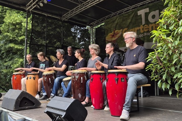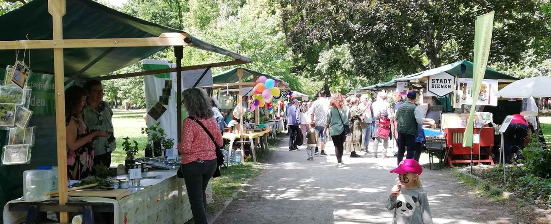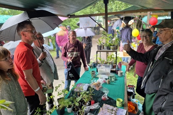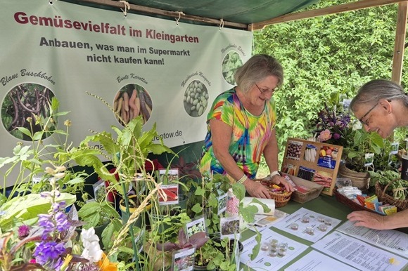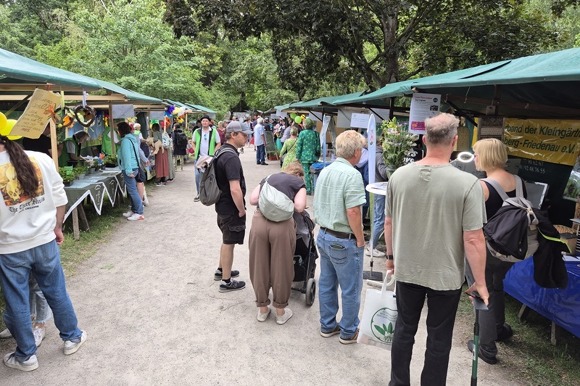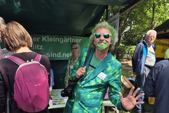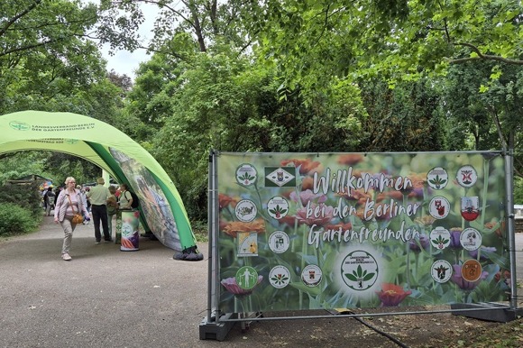 Am 7. Juni 2025 war richtig was los im Stadtpark Lichtenberg. Zum Tag des Gartens hatte der Landesverband Berlin der Gartenfreunde e. V. wieder zu einem öffentlichen Fest für alle Berlinerinnen und Berliner eingeladen. Weit über 2000 Menschen kamen im Laufe des Tages und haben das gebotene Informations- und Unterhaltungsprogramm reichlich genutzt – trotz zweier heftiger Regengüsse. 15 Bezirksverbände haben das Berliner Kleingartenwesen an ihren Marktständen abwechslungsreich und sehr engagiert repräsentiert. An den weiteren 15 Ständen haben sich Kooperationspartner und Umweltverbände vorgestellt.