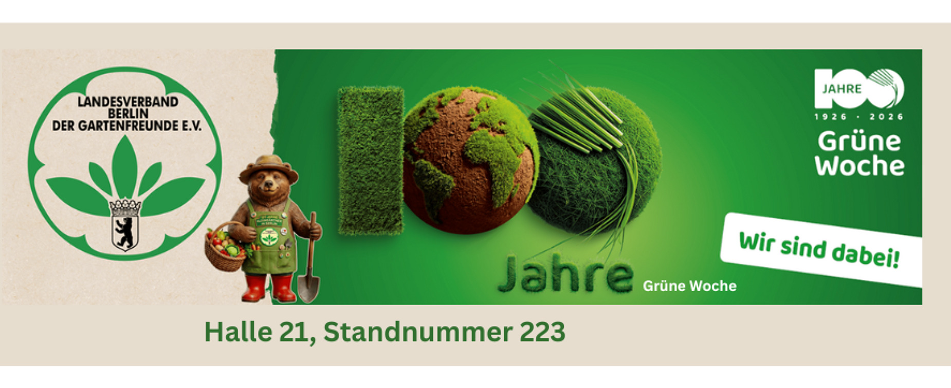 In diesem Jahr feiert die Grüne Woche ihr 100-jähriges Bestehen. Deshalb sind wir in diesem Jahr mit dabei, schließlich haben die Berliner Gartenfreunde die Messe nach dem 2. Weltkrieg „wiederbelebt“.